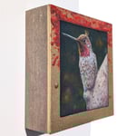 Titled "Nectar," this 5" x 5" x 1.5" oil painting is a provocative commentary on the cultural double standards surrounding beauty and censorship. The piece features a delicately rendered, realistic hummingbird perched atop the nipple of a stone statue, juxtaposing the natural elegance of the human form with a visceral, faux-painted gold frame that appears to drip with blood. By placing the "taboo" of nudity alongside the "acceptable" imagery of violence and death, the artwork challenges the viewer to question why society often finds graphic gore less offensive than the human body. This deep-profile painting serves as a bold, intellectual statement piece, inviting a dialogue on the strange boundaries of modern acceptability.
