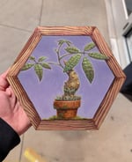 Set within an 8-inch hexagonal panel, this piece continues the "Framed In" series. The intricate, hand-painted faux-wood grain frame acts as a visual metaphor for the societal structures and mental constructs we build around the idea of prosperity. It highlights how our perceptions of "success" are often framed by external expectations rather than natural development.